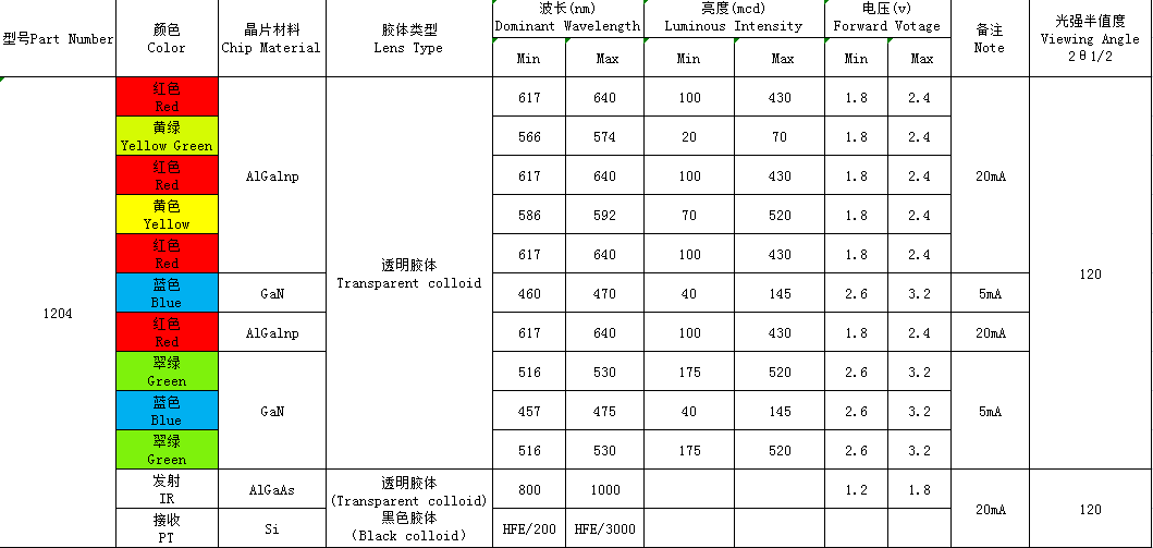 1204(單、雙、全彩、ICRGB、發(fā)射接收)全系列