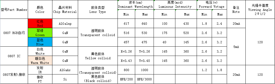 0807(單、雙、全彩、ICRGB、發(fā)射接收)全系列