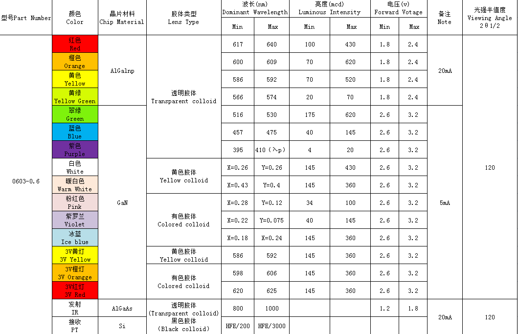 0603-0.6單、雙、ICRGB全系列、(1608)全彩